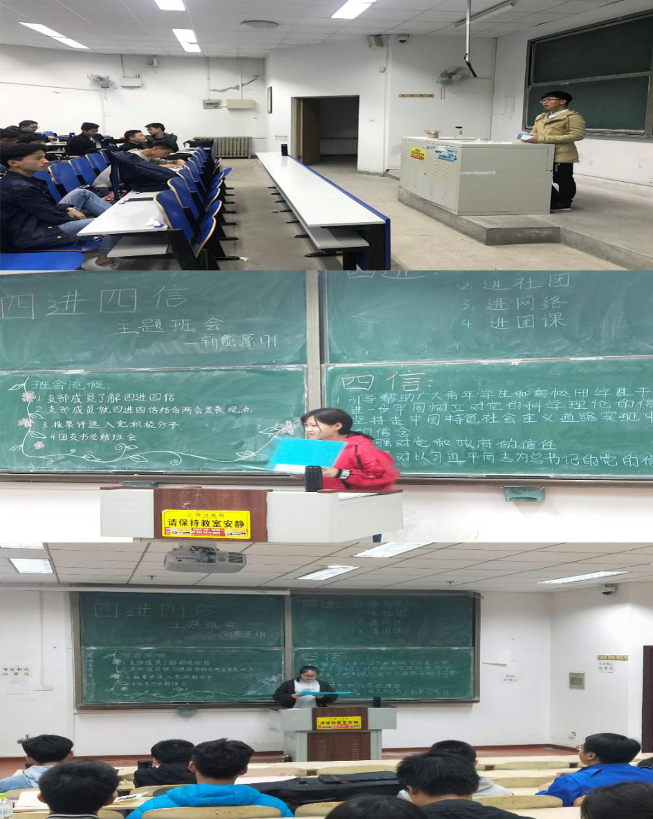 分团委组织部扎实推进“四进四信”活动,切实以“四进”增强“四信”,以“四信”促进“四进”,各级团学组织深入开展了“四进四信”与全国两会主题班会。
