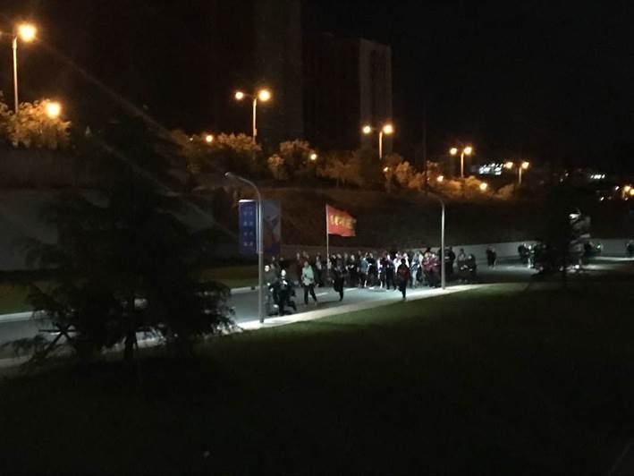 20:00点整,热情的快闪舞蹈拉开了荧光夜跑的序幕,随着荧光亮起,我院分团委李东阳老师、孙坤岩老师慷慨激昂的讲话点燃了同学们的热情,李东阳老师倡导要在实践中体会“地球一小时”的深刻内涵,作为科大学子我们应牢记社会使命,不忘初心,砥砺前行。之后,随着夜跑指令的发出,100多位参与者一起出发,他们头