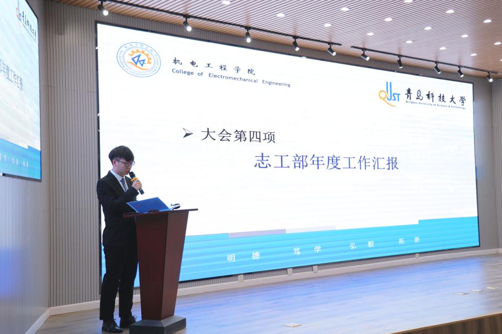 青年志愿者协会会长宋文志上台宣读志工部活动流程,令志工部活动更加规范、流畅。青尘义工队队长邱琦宣读个人安全责任书,安全始终是志工部活动的首要前提。微尘志愿者协会会长岳童上台进行志工部年度工作汇报。总结现状,展示成果,指出不足,展望未来。最后,志工部三个部门对下一年度的工作计划进行汇报,明确了志工部下一年度的工作方向和工作目标。