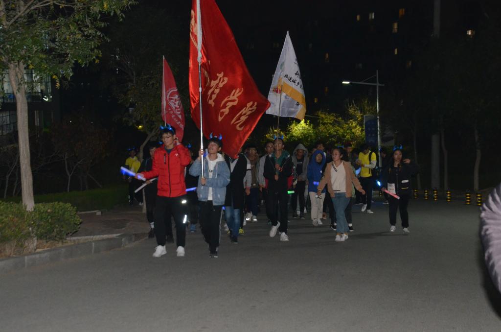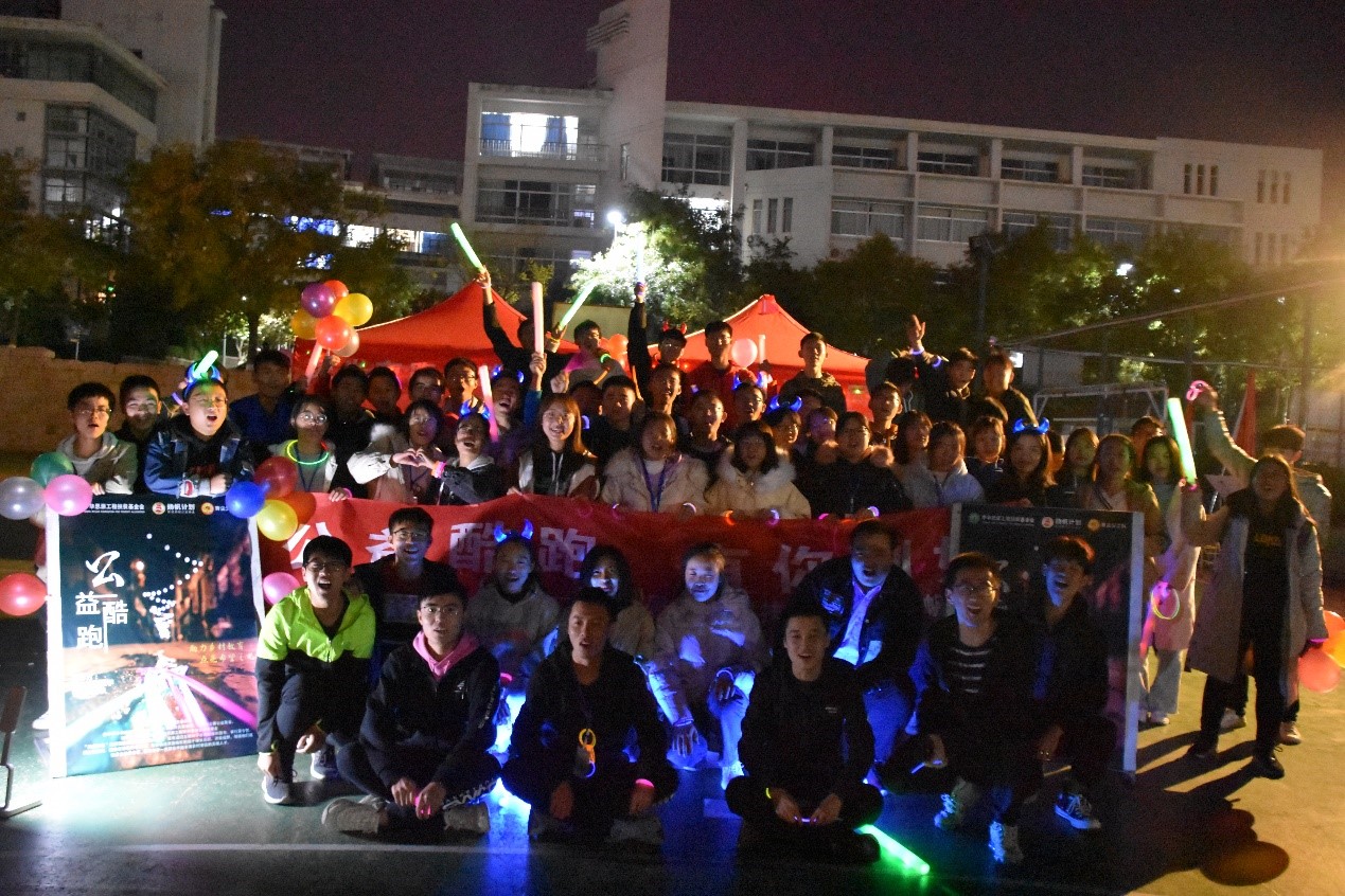 他们先后去到图书馆、机电大楼、北七宿舍楼、弘毅楼、南五宿舍楼,将绚丽多彩的荧光带到学校的各个角落。最后回到了操场,由青尘义工队队长邱琦抽出今晚的幸运天使,并赠与其爱心大礼一份。