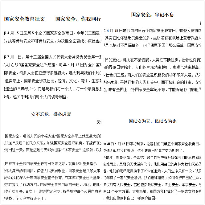 4月15日是第5个全民国家安全教育日,为丰富学生国家安全知识,提高学生维护国家安全的意识,色情小说