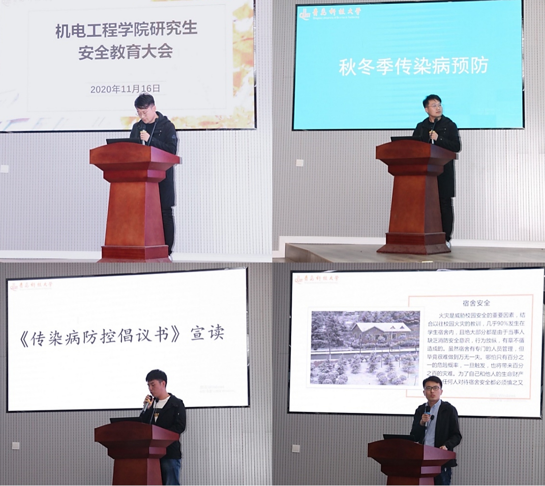 常态化疫情防控宣传教育明白纸》,号召同学们认真学习传染病预防的相关知识,严格遵守学校常态化疫情防控各项要求,提高抵御风险的能力;研究生会执行主席江峰结合诸多宿舍安全事故案例,进一步强调宿舍安全的重要性,并总结了在宿舍内遇到突发事件的应对措施。大会第二环节为知识竞答,参赛选手们以班级为单位分组进行日常安全、卫生相关知识的抢答。最终193班、202班、206班分获比赛前三名。