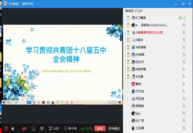 积极开展,遍地开花。自活动开展以来,各团支部通过云端主题团日活动、线上学习交流会、“微团课”等多样形式积极引导团员们广泛深入讨论探讨共青团十八届五中全会精神及其内涵,得到了显著的效果。