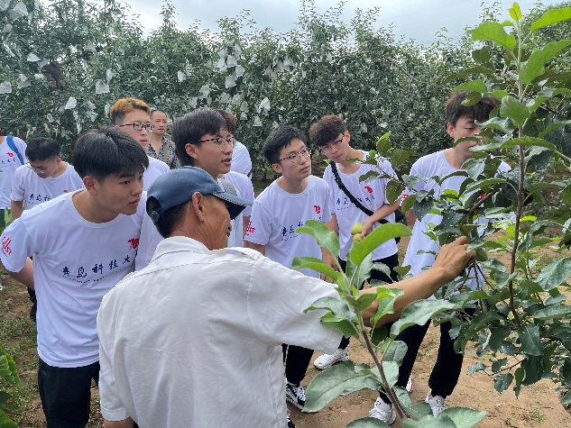 暑期乡村振兴实践团赴青岛胶州洋河镇曲家炉村进行社会调研实践活动。前后两天时间,在带队老师郭佩佩的带领下,小组成员对当地产业进行体验、为产业园做志愿活动并针对乡村发展、果园种植等问题分别对村支书、产业负责人进行了采访。