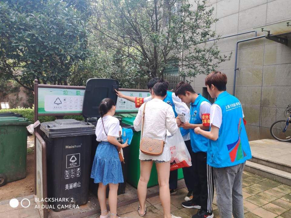 在工作人员引领下,队员们在社区积极开展了驻通引导工作。活动过程中,队员分为三组在社区垃圾桶旁对下楼扔垃圾的居民进行了垃圾分类知识的讲解与对上门回收美家APP的推行。当日的高温为志愿服务团带来了身体素质与毅力上的挑战,但工作过程中,队员仍表现出了工作耐心,语言得体,举止礼貌的形象。在队员的耐心讲解下,许多居民对垃圾分类知识有了进一步的认识,并对垃圾分类及资源的重复合理利用持一种支持而积极的态度。引导过程中队员也相继得到了居民的认可与鼓励,这给团队相当大的鼓励。