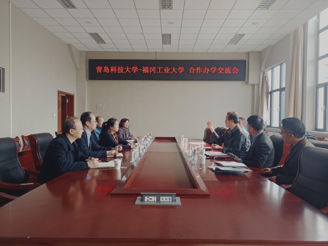 -福冈工业大学合作办学交流会,院长何燕主持,副院长张斌、杨化林、李剑光、系主任赵海霞参加。国际处处长王灏、副处长张大伟、研究生院副院长李磊作为中方职能部门代表,卢存伟教授作为福冈工业大学日方代表受邀参加。