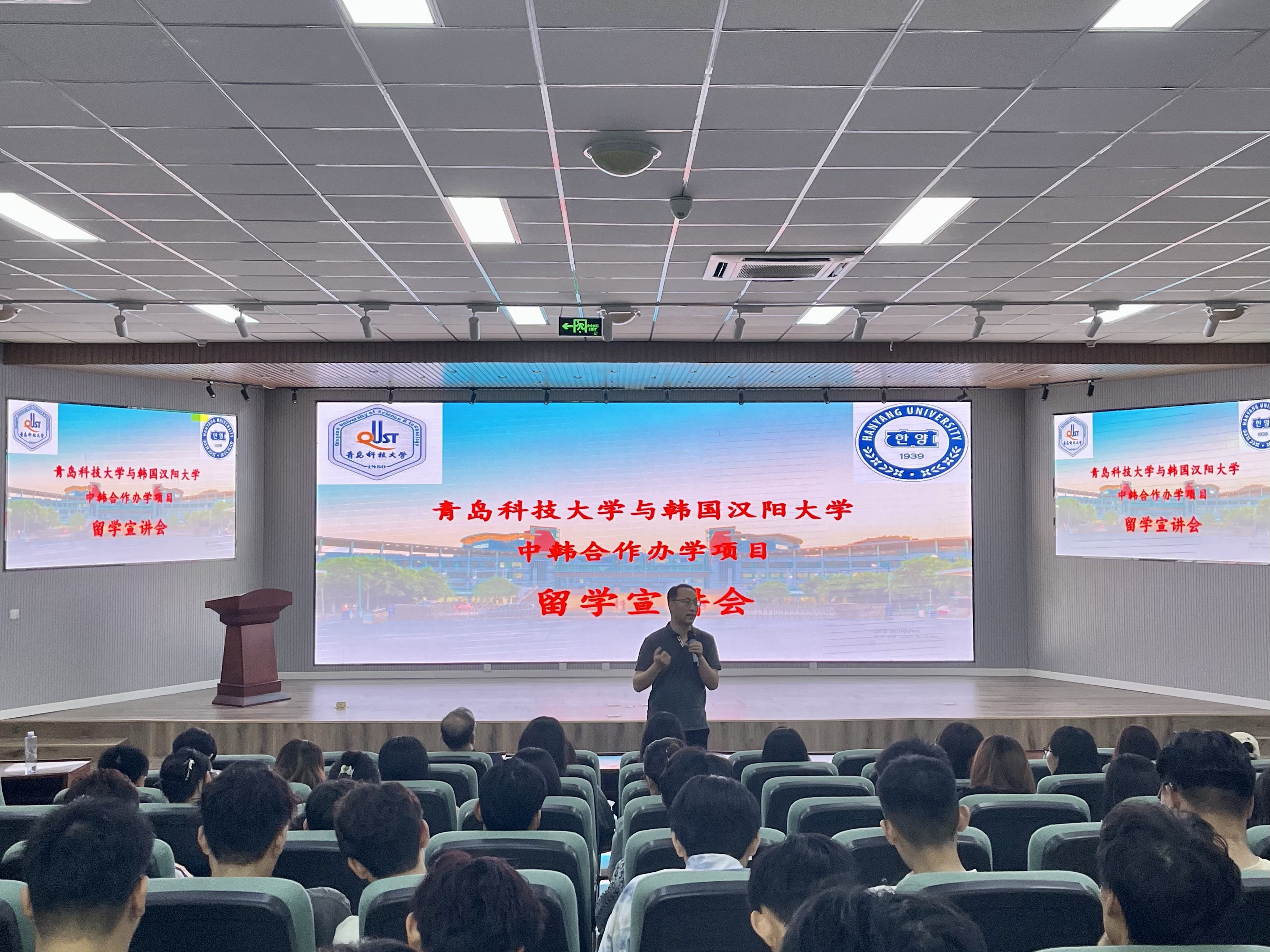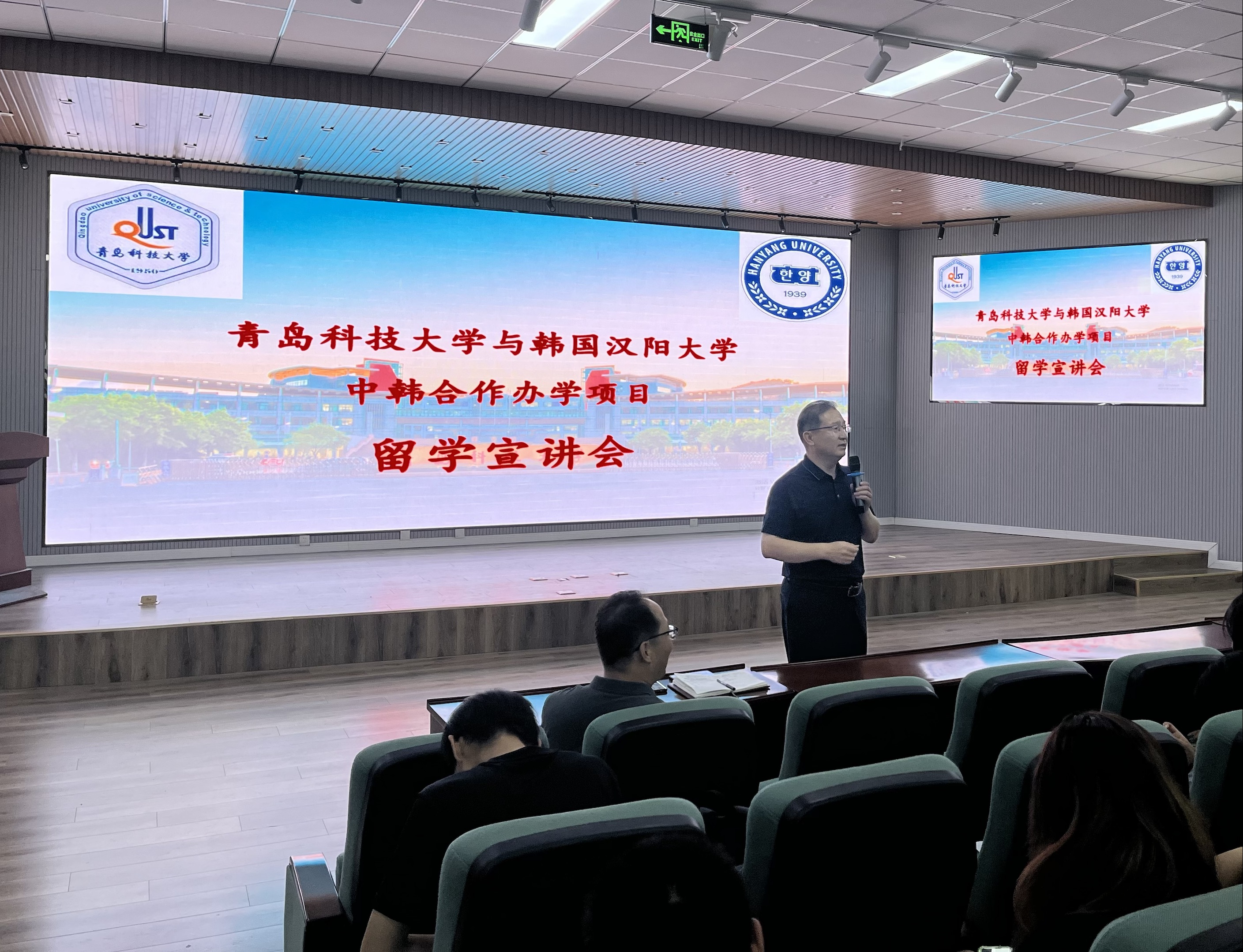 6月27日下午,色情小说 与韩国汉阳大学中韩合作办学项目留学宣讲会在崂山校区机电楼530会议室召开。学院党委书记任允晓、副院长李剑光、项目负责人林奕出席了会议。