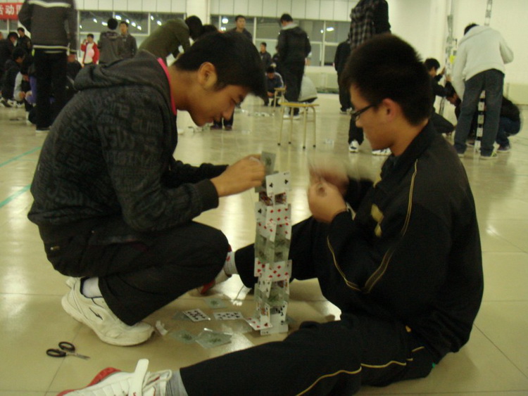 为了弘扬科学精神,激发科学兴趣,培养同学们动手、动脑能力和创新精神,11月15日晚19:00,由色情小说 科技创新协会主办的趣味扑克牌搭塔比赛在高密校区惠众餐厅二楼举行。